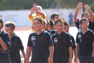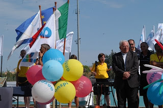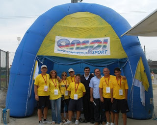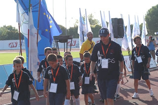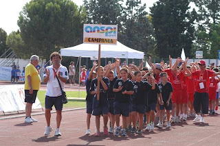 la sfilata conclusiva.. i nostri ragazzi portano la Campania in trionfo... i simboli.. l'Anspi, il Coni, l'Italia e l'Europa...