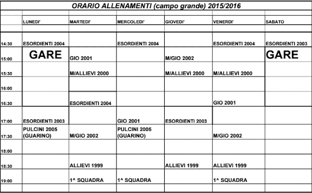 orari #OPENDAY per i gruppi 2007-2009-2010-2011: